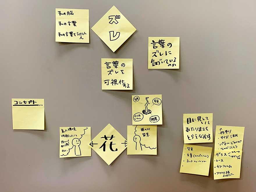 制作に向けて、言葉の“ズレ”について考えた付箋