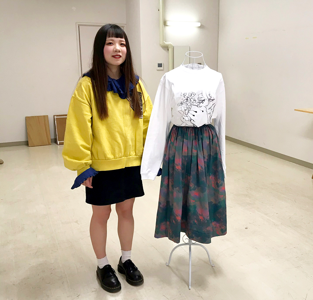 第9回目の取材はテキスタイルデザインの作品「心に花を添えて」を制作した、曽我風香さんです。テキスタイルデザインと自分との関係性、デジタル表現デザインコースの学びについて伺いました。