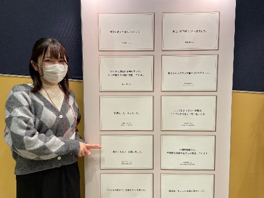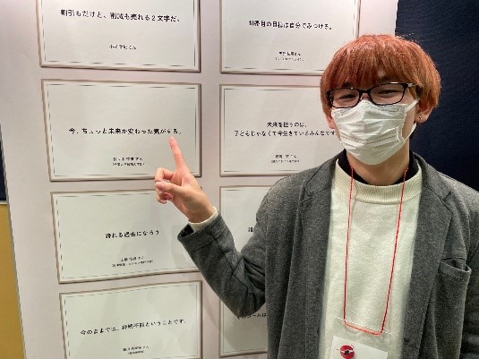 また、1年の佐々木楼唯さんの作品「今、ちょっと未来が変わった気がする。」(SDGsへの取り組みで未来が変わることを伝えるコピー)と2年生の名木すみれさんの作品「『見たことない』を見に行こう。」(ホログラム演劇を見たくなるコピー)が、ファイナリスト(各課題の優秀10作品)に選ばれました。