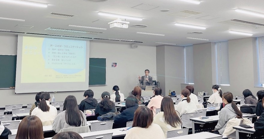 日本語日本文学科では、1月20日(金曜日)、読売テレビアナウンサー萩原章嘉氏(焼津市出身)をゲスト講師に迎えた特別講座「現役アナウンサーが語る!声・ことば・コミュニケーション」を開催しました。