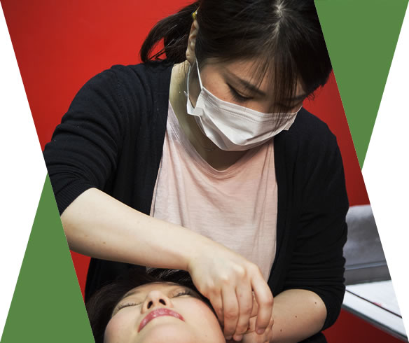浜松キャンパスの構内には鍼灸院が併設されていて、実習では教員の立ち会いのもと、一般のお客さまへ実際に施術を行い、臨床現場を経験することができます。
