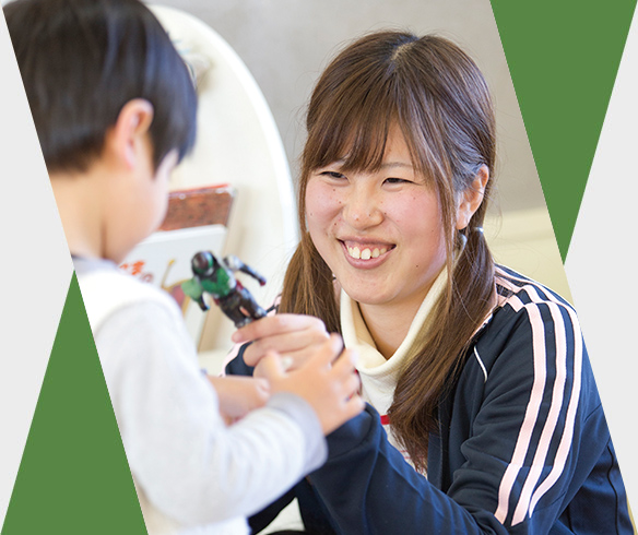 子どもたちのことを第一に考え、一緒に喜び、悩み、また感動を分かち合いながら、皆が心から楽しいと思える環境や遊びを提供できる保育教諭が私の目標です。子どもたちから「先生大好き!」と言ってもらえると嬉しい。そう言われるよう、これからも頑張ります。