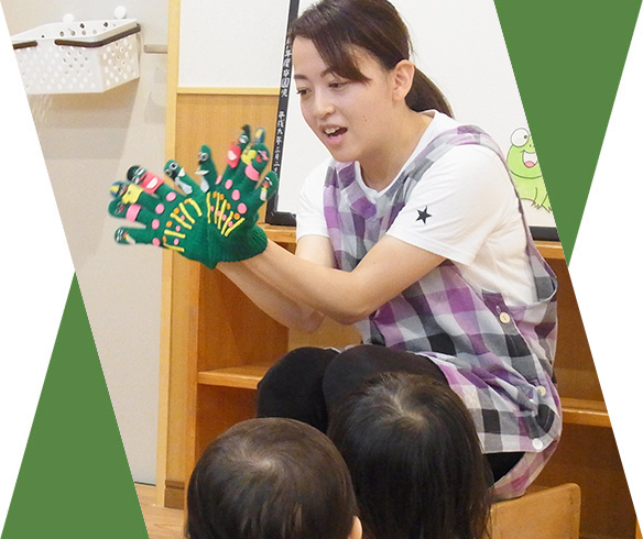 就職後は短大の先輩方から助けられましたが、いつの間にか短大の後輩も多くなりました。学生時代に授業で作ったパネルシアターや、実習の為に作った手袋シアターが今でも職場で活躍中です。12年間の保育士生活を職場の仲間とともに支え合いながら、責任感をもって働いてきました。