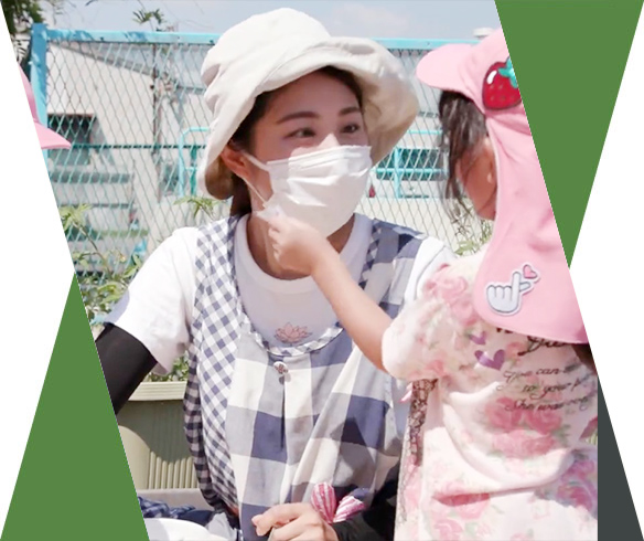 静岡市立有度北こども園で、年少の3歳児クラスの担任をしています。個性豊かな子どもたちと一緒に、身近な自然に全身で触れて遊ぶ毎日です。花や葉っぱを使った色水遊びや、砂場での川や山作り、泥んこ遊び等々。楽しむ中で、一緒に新しいことを発見したり、考えさせられたりと、様々な思いを共有して過ごしています。
