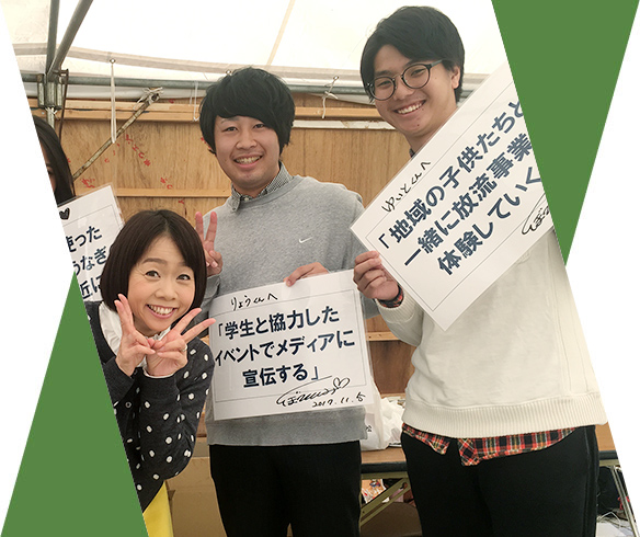 経営学科の先生には、地域貢献活動がしたいと相談した際、親身に相談に乗っていただき、学生が参加できる活動を紹介していただきました。その時の体験が地域を支える仕事をしていきたいと考えるきっかけとなりました。