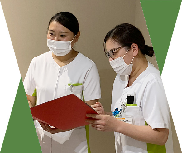 私が所属している病棟には、主に手術を受けられる患者さんや終末期の患者さんが入院されています。入院生活を安心・安全に送ることができるように、当院看護部の理念である4つの柱、「根拠に基づいた看護」・「医療事故防止」・「合併症予防」・そして「倫理的配慮のある看護」に沿って看護を提供しています。