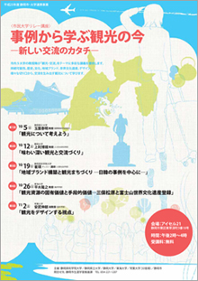 今年度は10〜11月の土曜日、「事例から学ぶ観光の今」をテーマに、様々な切り口から「観光・交流」について考えます。