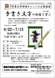 常葉大学静岡キャンパス公開講座「手書き文字の秘密を学ぶ」開催のお知らせ