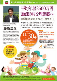 常葉学園文化講演会の講師は、寒村を日本一のレタス王国に押し上げ、さらに文化・福祉も充実した村づくりをされている川上村長 藤原忠彦氏をお招きし、「逆境から順風へ -『郷育』による人づくり村づくり」をテーマにご講演いただきます。
