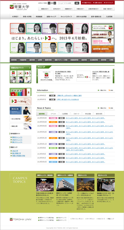 常葉大学では、2013年4月の総合大学「常葉大学」誕生に伴い、より多くの人々に本学の価値・魅力を最大限に伝えるために、内容の充実と共に見やすさ・使いやすさを実感できるユーザビリティに配慮したホームページを目指しました。
