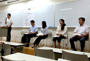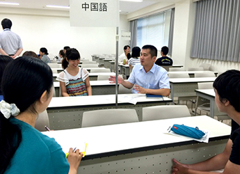 静岡県警察本部通訳センターからポルトガル語、スペイン語、中国語、韓国語、英語の講師5名をお迎えし、警察官の通訳の仕事全般についてお話をしていただきました。その後、言語毎に分かれて講師と学生がグループディスカッションを行い、出席した学生たちは、自分が外国語学部で学んでいる言語が警察の仕事の中でどのように活かせるかについて、熱心に質問をしていました。