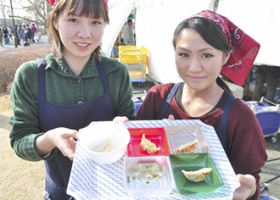 浜松市西区の食材をPRする「西区まつり」と「おいしい舞阪まるごと体験フェア」が2月2日(土曜日)、同区の浜名湖ガーデンパークで開かれ、本学健康プロデュース学部健康栄養学科の学生が開発した「セロリ餃子」が試食販売されました。