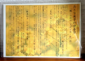 また、大学院健康科学研究科健康栄養科学専攻の松尾紘生さんが作った「おとな女子の栄養学」という栄養情報提供POPも置かれています。これも季節ごとに変えていく予定です。