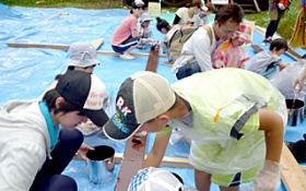 「こどもむら」は自然体験を通して子どもたちに好奇心を養ってもらうことや、学生の保育力を磨くことが狙いで、学生が企画から運営までを行っています。