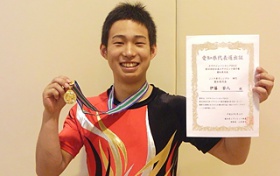 また同日、名古屋市中村スポーツセンターで開催された愛知県大会においても、健康プロデュース学部心身マネジメント学科4年の伊藤誉人さんがシニア男子シングル部門で入賞し、 愛知県代表として中部地区大会に進出することが決定しました。