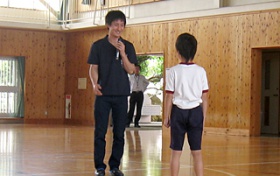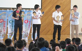 後日行われた児童に対する防犯教室では、子どもたちとコミュニケーションを取ったり、自ら犯人役に扮して「知らない人に着いて行かないこと」「大人の足はとても速いこと」など、防犯知識の教育に一役買いました。