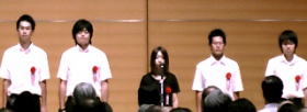 式典の最後に社会環境学部の学生5名が代表で富士山憲章を読み上げる場面もありました。