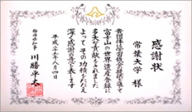 富士山の世界遺産登録への貢献で常葉大学に感謝状