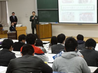 講座は社会環境学部の集中講義で、2日は県警察官が講演し、4日は東京消防庁の職員が同震災やニュージーランド地震での活動事例を紹介しました。