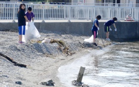 この日は10月5日(土曜日)に行われる大会「第3回浜名湖SUPクラシック」の会場となる海岸の清掃活動で、宮村教授とATサークル生11名が参加しました。