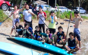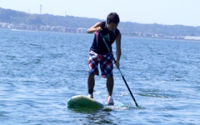 その後、大会運営をするにあたりSUPとはどういうものか知るために、SUPの体験会も行われました。大半が初めてでしたが、すぐにコツをつかみ楽しく漕ぐことができました。