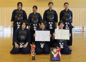 「第36回東海女子学生剣道優勝大会」では、予選リーグを抜け、決勝トーナメントも相手チームに1勝も与えずに準決勝で愛知学院大学と対戦し、2−0で下しました。決勝戦の中京大学戦では惜敗しましたが、準優勝を果たしました。