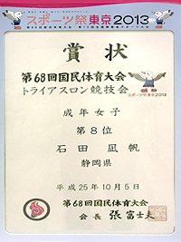 東京国体トライアスロン競技会で石田凪帆さんが8位入賞
