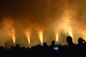 撮影スタッフは、映像部の大池涼介さん、須郷進さん、鈴木一樹さん、松永尚也さん(いずれも経営学部1年)の4名。豊橋球場にて行われた三河の伝統花火である手筒花火の打ち上げの模様を、映像部顧問の小島康史准教授の指導のもと、複数のカメラを使用したマルチメディア収録を行い、迫力ある映像にまとめました。
