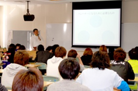 健康プロデュース学部健康鍼灸学科の学生を対象としたこの講演は、学科行事の一環として行われ、スポーツ現場での鍼灸業務の実態を知ることを目的に行われました。