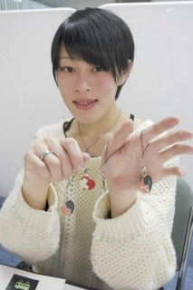大臣賞受賞作の「心のコミュニケーションアクセサリーとストラップ」は、目や耳に障害がある人やペースメーカーを着けている人が、口に出さなくても周りに状況を伝えられ、目や耳、心を描いたデザインです。