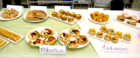 今回は、地場の野菜を使った8種のパン(さつまいものスティックパン、野菜のガレット、お茶とみかんのパン、ジャーマンポテトパン、明太ポテトパン、玉ねぎのパウンド、セルリートマトパン、さつまいものレーズンパン)をレシピ化し、試食販売を行いました。来場者による人気投票も行われ、投票の結果、藤田貴大さん(健康栄養学科3年)の「さつまいものスティックパン」が優勝しました。