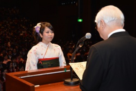 また、卒業生を代表して外国語学部の長嶋明日菜さんは「大学で学んだ多くのことを、生きていく中で何度も思い出し、立派な社会人になると誓います」と答辞を述べました。