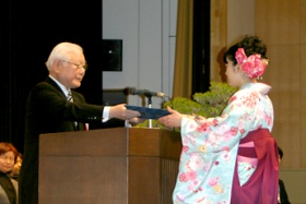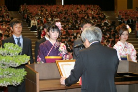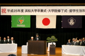 平成25(2013)年度 浜松大学卒業式・大学院修了式が3月14日(金曜日)、浜松キャンパスにて行われ、卒業生386人が、身に付けた知識や技能と志を胸に社会への一歩を踏み出しました。