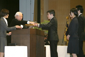 西頭德三学長は、学生代表に学位記や修了証を手渡し「社会の動きから目を離さず健康に留意して人生を築いて」と告辞を述べました。