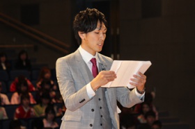 卒業生代表で総合経営学部(現:経営学部)の林恭平さんが、ゼミや学園祭を振り返り「卒業生の人数だけ、それぞれの感謝の気持ちがあふれている」とあいさつしました。また、東京消防庁に就職を決めた社会環境学部の佐野匠さんは「社会に貢献したいという気持ちを持ち続けたい」と語りました。