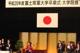 平成25(2013)年度 富士常葉大学卒業式・大学院修了式が3月18日(火曜日)、富士市の富士ロゼシアターにて行われ、3学部と大学院1研究科の学生計325人が新たな一歩を踏み出しました。