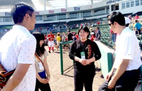 本研修では、フロリダでキャンプを行うメジャーリーグ15球団を訪問しました。中でも、メジャーリーグの昨年の覇者Boston Red Soxではクラブハウスの見学や、実際にトレーナーから学ぶ機会を得ました。傷害予防対策、コンディショニング、トレーニング方法など、実際の話を伺えました。また、選手との信頼関係の築き方など、学生からの質問に丁寧に答えていただきました。異国で戦う日本人選手や日本人スタッフとの交流に学生たちも目を輝かせていました。