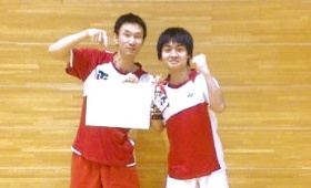 第20回静岡県大学バドミントン選手権大会が、3月8日(土曜日)、16日(日曜日)に静岡大学にて行われ、1部ダブルスで、本学浜松キャンパスバドミントン部の松永典晃さん(大学院健康科学研究科臨床心理学専攻2年)・鈴木貴治さん(心身マネジメント学科3年)ペアが優勝を果たしました。