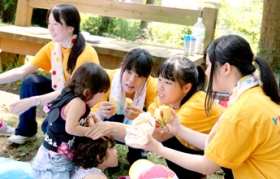 保育学部の百合草ゼミ1、2年生が、7月12日(土曜日)に富士総合運動公園にて「森の幼稚園」を開催しました。