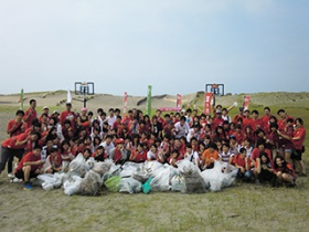 浜松・東三河フェニックスを率いるキャプテン大石慎之介選手は、本学健康プロデュース学部心身マネジメント学科の卒業生であり、お世話になった浜松に貢献したいとの思いから中田島砂丘の清掃を発案し、ThunderBirdsの企画・運営により、学生(ThunderBirds、経営学部 中津川ゼミ、女子バスケットボール部など)、フェニックス関係者、ブースター、ボランティアなど120名が参加し、約190kgのゴミを集めました。