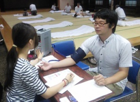 県民健康フェスタ西部地区で血行動態測定/健康鍼灸学科