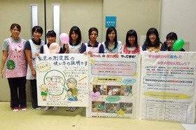 乳幼児は学生の作ったアンパンマン測定器に興味津々。学生たちに励まされ、握力計をギュッと握ってくれました。子どもたちにプレゼントを用意し、保護者の協力のもと楽しい交流ができました。