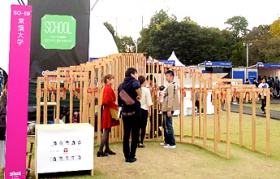 明治神宮外苑絵画館前で、10月25日(土曜日)~11月3日(月曜日)の10日間にわたって開催されたデザイン界の一大イベント「東京デザイナーズウィーク2014」に、本学造形学部 環境デザインコースの2~4年生が中心となって製作した「再 Re」という作品を展示しました。