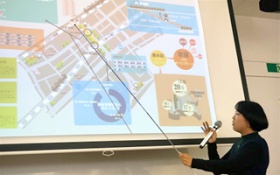 造形学部の学生は新静岡、日吉町、音羽町、県総合運動場、美術館前、草薙、御門台、桜橋、新清水の駅ごとに、沿線の、目に見えない価値を明らかにするという課題に取り組みました。法学部の学生は北街道の歴史的資源を再発見し、Mapを作成しました。