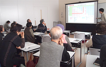 今回は水落校舎内において、学生が主催する交流会を開き、鷹匠1丁目にお住まいの14名の方に「必要な栄養をバランスよくとるための栄養講座」、「1人でもできる下半身の運動」のお話をしました。その後ゆっくりお話をする時間を持ち、地元の方々と深く交流することができました。
