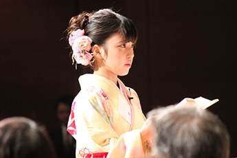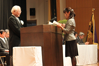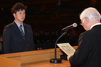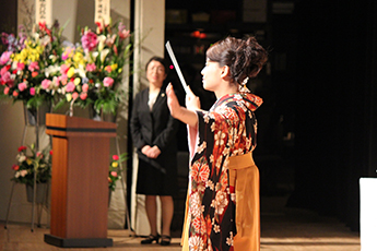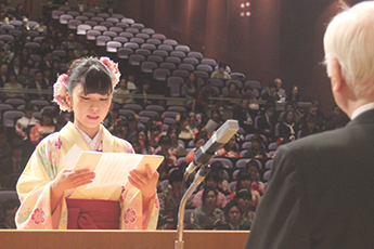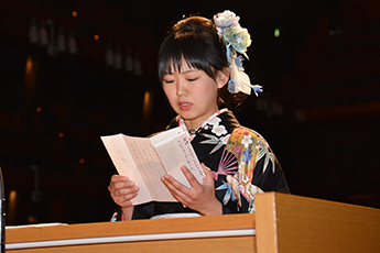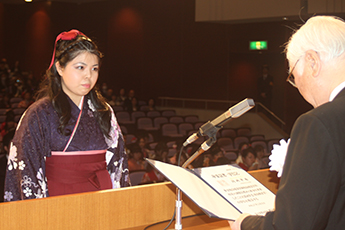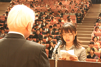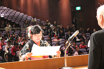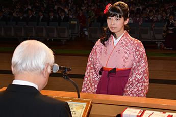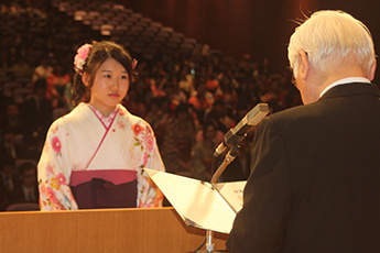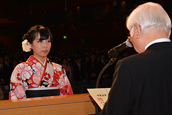 また、卒業生を代表して外国語学部の加藤千尋さんは「地域社会に貢献できる立派な人間になっていけるよう努力することを誓う」と答辞を述べました。