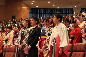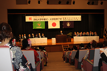 平成26(2014)年度 浜松大学卒業式・大学院修了式が3月14日(土曜日)、浜松キャンパスにて行われ、卒業生430人が、身に付けた知識や技能と志を胸に社会への一歩を踏み出しました。