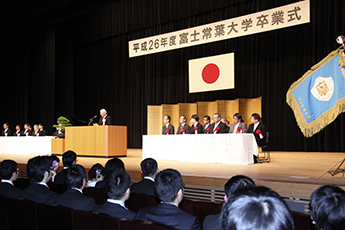 平成26(2014)年度 富士常葉大学卒業式が3月18日(水曜日)、富士市の富士ロゼシアターにて行われ、3学部の学生計245人が新たな一歩を踏み出しました。