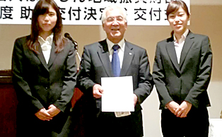 4月8日(水曜日)に浜松市内で行われた助成金交付式には本学学生2名が出席し、御室理事長より交付書が手渡されました。