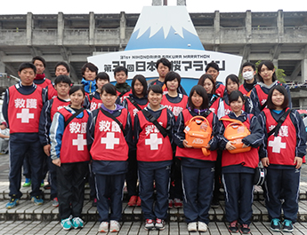 4月5日(日曜日)に静岡市で開催された「第31回日本平桜マラソン」で、健康プロデュース学部心身マネジメント学科の学生が所属するアスレティックトレーナーサークル(CATS)と、アスレティックトレーニング実践研究ゼミの学生21名が、参加ランナーに対してBLS隊として救護活動にあたりました。